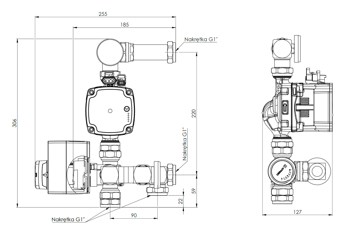 Устанавливается между источником тепла и коллектором поверхностного отопления в коллекторном шкафу.
