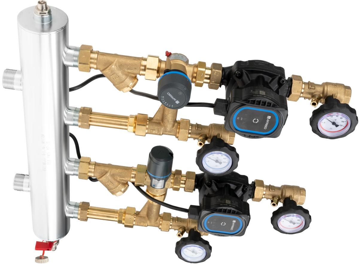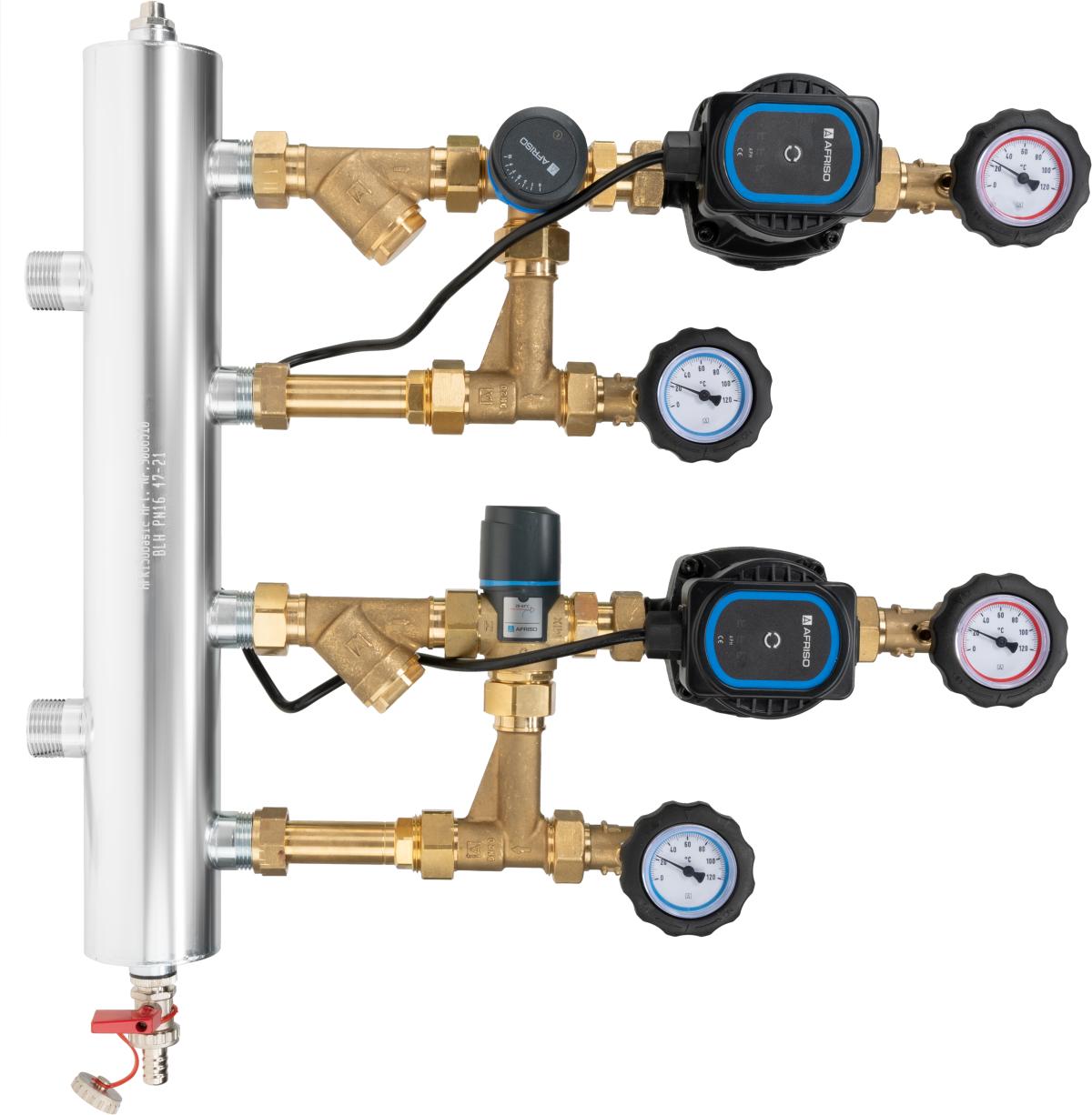 Смесительный набор с гидрострелкой BPS 961 AP, контур с поворотным клапаном ARV 362 Vario ProClick и термостатическим клапаном ATM 561, насосы AFRISO APH 160
