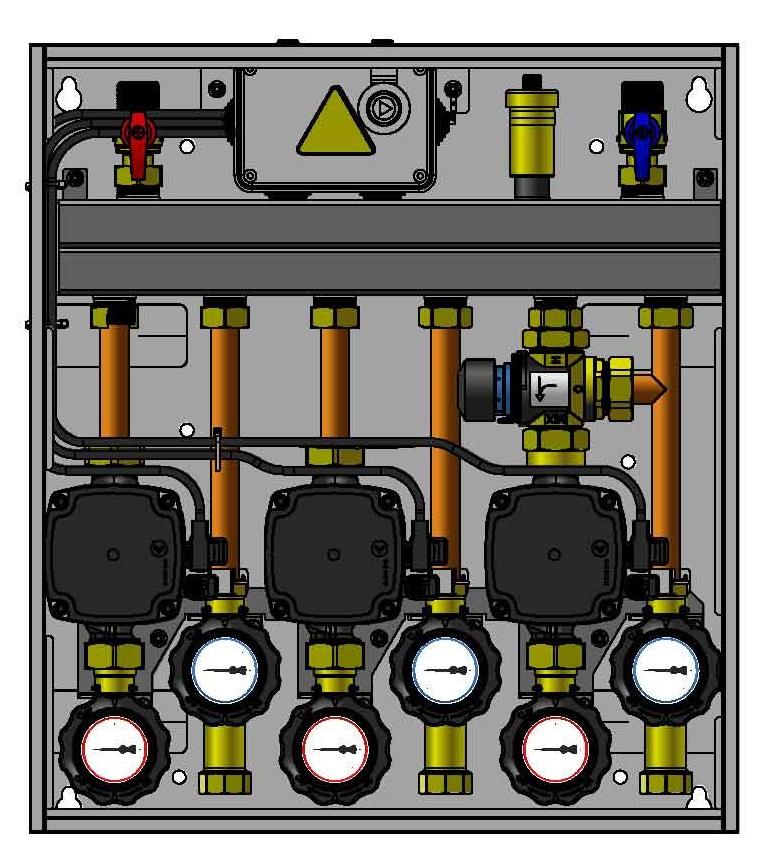 PrimoBox AZB 301 с гидрострелкой, 2 контура без смешивания и 1 контур с термостатическим клапаном ATM